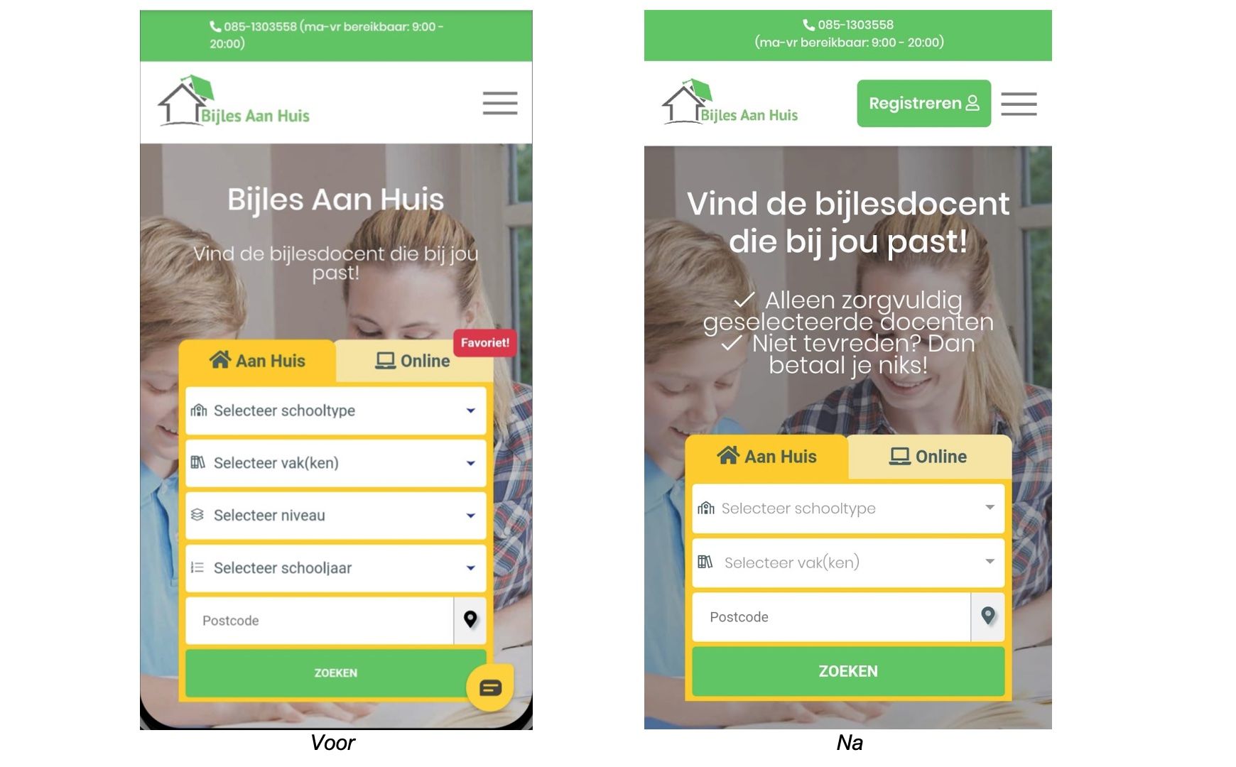 Aan de hand van dit rapport heeft Bijles Aan Huis verschillende aanpassingen aan de flow gedaan; sommige zijn meteen doorgevoerd, sommige zijn eerst onderworpen en daarna geA/B test.
